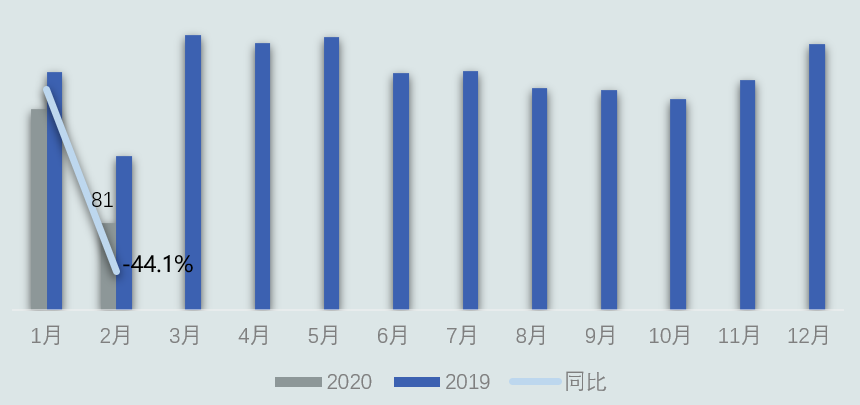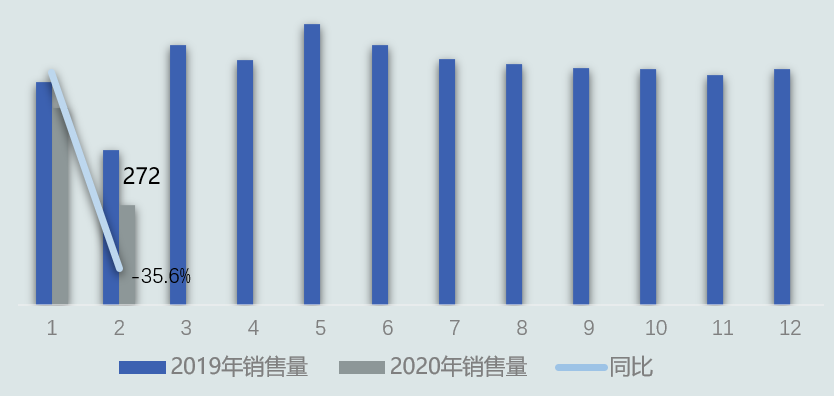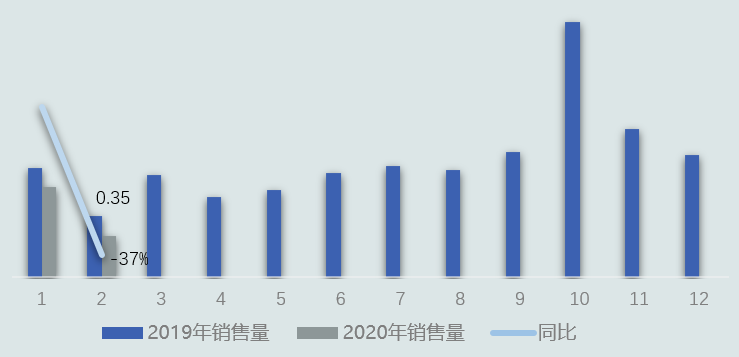 產(chǎn)業(yè)在線統(tǒng)計數(shù)據(jù)顯示2020年2月,陳列柜行業(yè)總銷量0.35萬臺,同比減少37%;銷售額2.2億元,同比減少37.5 %。